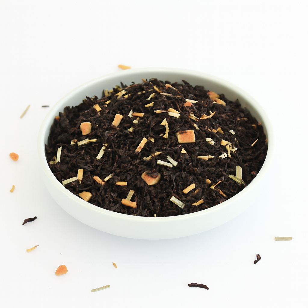 Sort Mary Te giver en fyldig te, der er tilsat spændende eksotiske smage fra bl.a. papaya, lavendel og citrongræs.